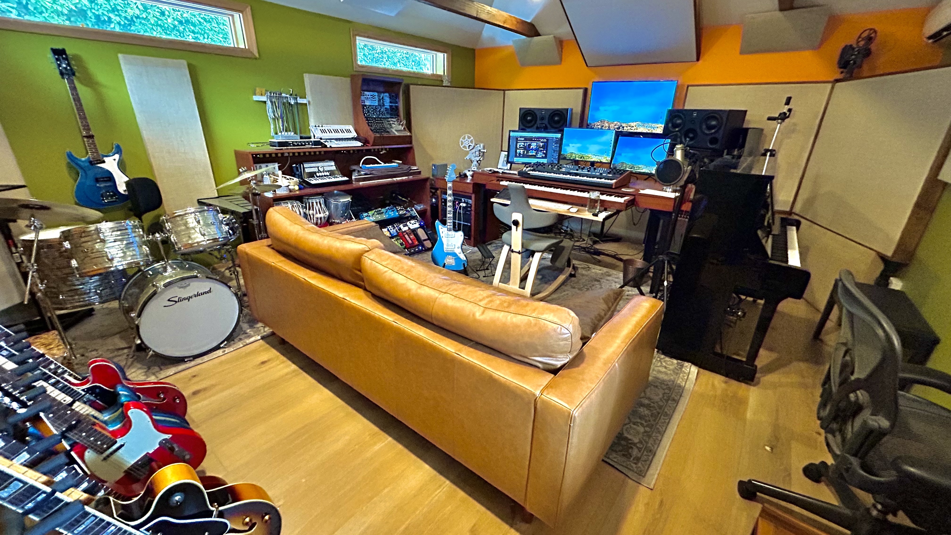 Zecker's studio 'StorySound Productions' is located in Valley Glen, CA. Recently custom-built, the 360 square-foot space is packed with vintage and cutting-edge creative tools and natural light. Playback is a 5.1 surround-sound system powered by ATC Loudspeakers.